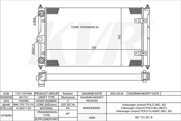 VOLKSWAGEN HATCHBACK,1981-94 MH RADIATOR