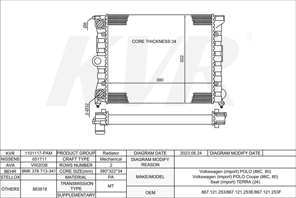VOLKSWAGEN SALOON,1988-97 AAM RADIATOR