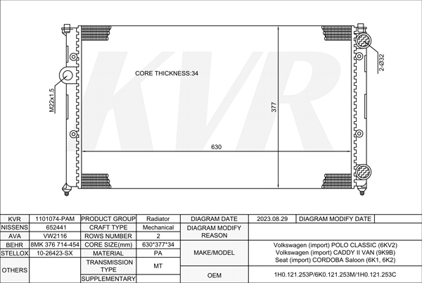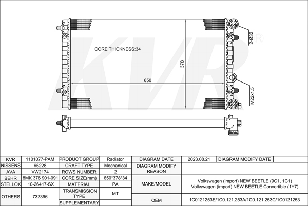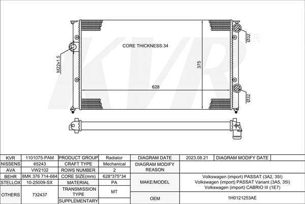 VOLKSWAGEN SALOON,1995-2006 1Y RADIATOR