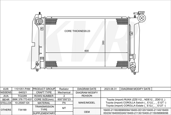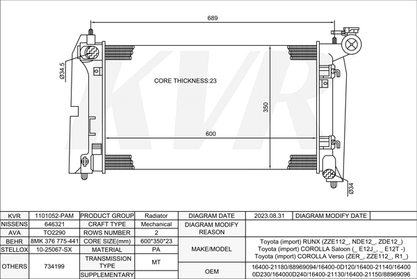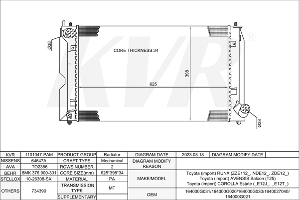 TOYOTA HATCHBACK,2001-07 1ND-TV RADIATOR