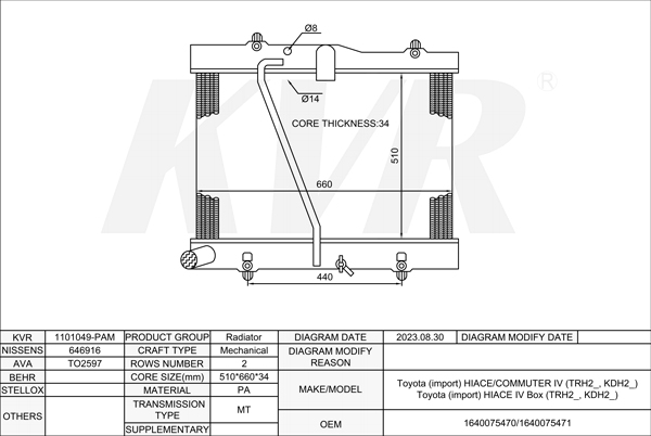 TOYOTA BUS,2004- 2TR-FE RADIATOR