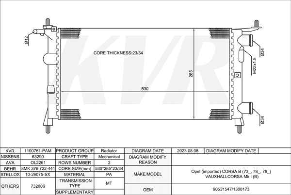 OPEL HATCHBACK,1998-2009 Y 22 DTR RADIATOR