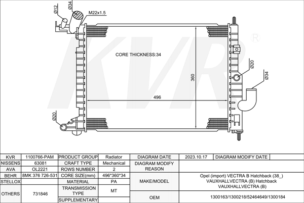 OPEL HATCHBACK,1998-2009 X 17 DTL RADIATOR