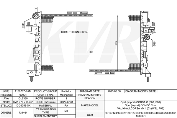 OPEL HATCHBACK,1995-2003 X 17 DT (TC4EE1) RADIATOR