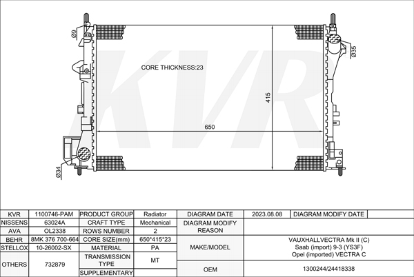 OPEL SALOON,2002- Z 18 XE RADIATOR