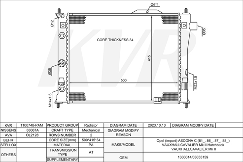 OPEL BOX,1991-99 17 DR RADIATOR