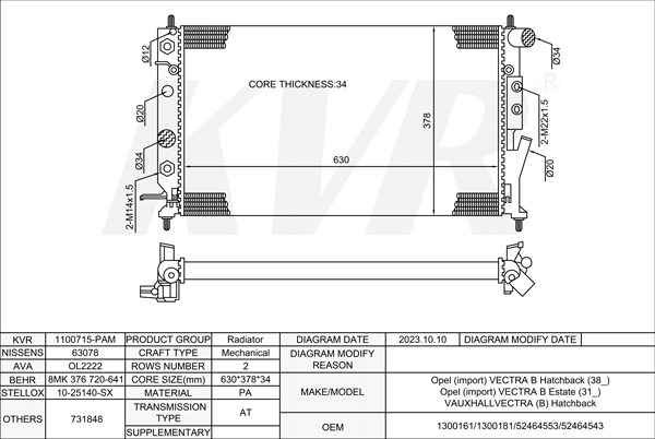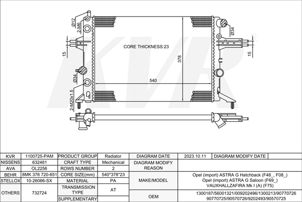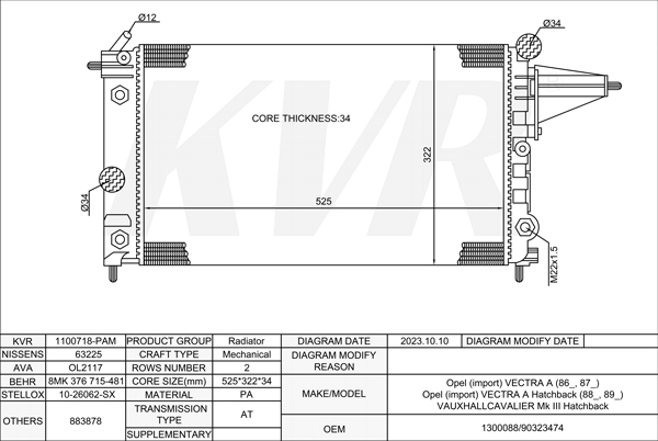 OPEL HATCHBACK,1995-2003 X 25 XE RADIATOR
