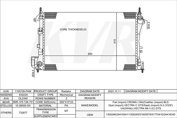 OPEL ESTATE,2004- Z 18 XER RADIATOR