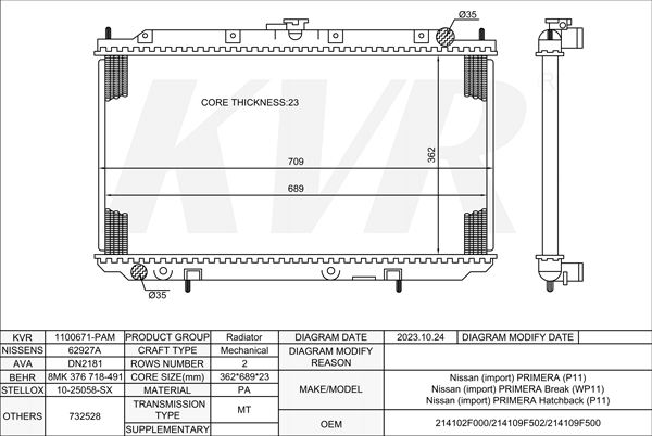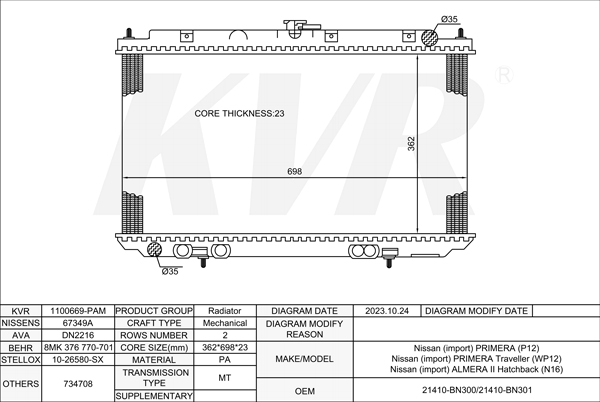NISSAN SALOON,1999- VQ30DE RADIATOR
