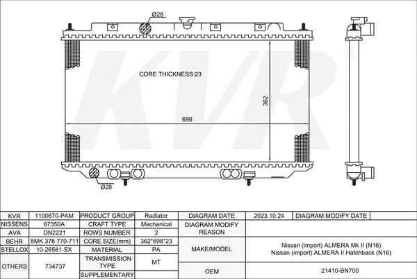 NISSAN SALOON,2000- K9K 722 RADIATOR