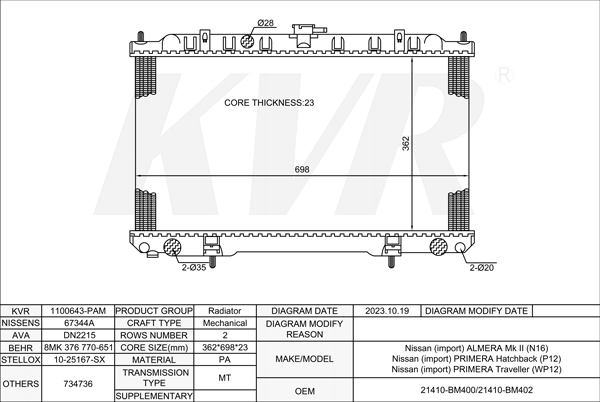 NISSAN HATCHBACK,1992-2003 TD15 RADIATOR