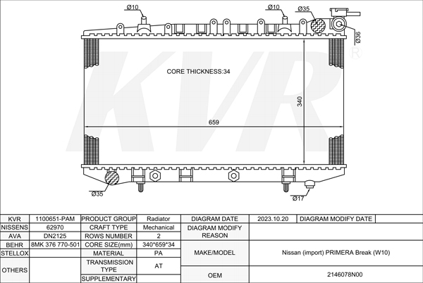 NISSAN SALOON,996-2001 CD20T RADIATOR