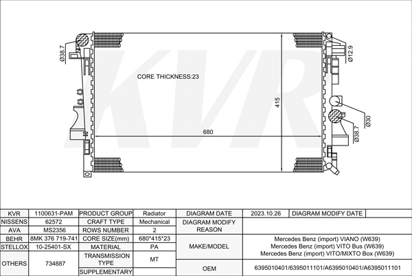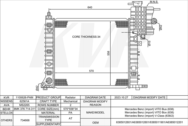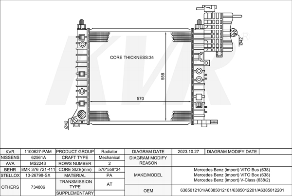Mercedes Benz MPV,2003- M 112.976 RADIATOR