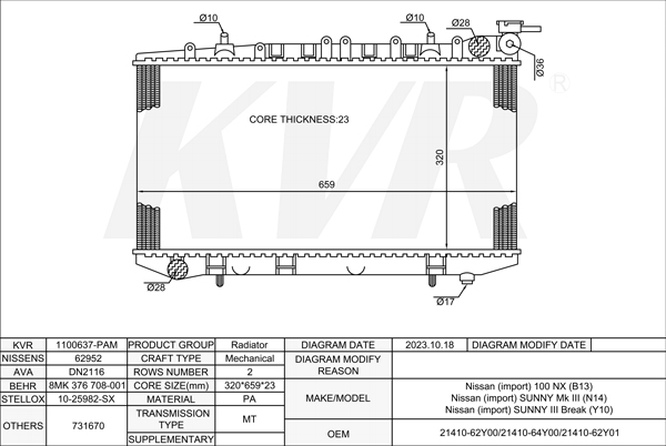 NISSAN SALOON,1990-96 GA14DS RADIATOR