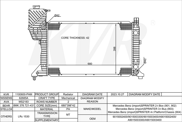 Mercedes Benz BOX,1995-2006 OM 602.980 RADIATOR