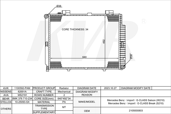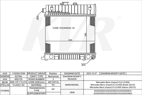 Mercedes Benz SALOON,1995-2003 M 112.941 RADIATOR