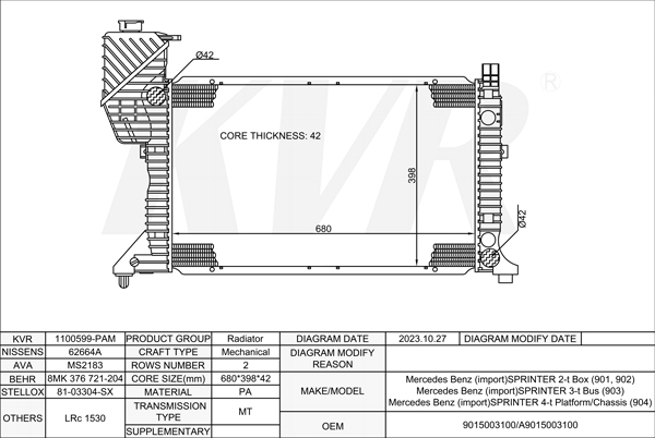 Mercedes Benz BOX,1995-2006 OM 601.943 RADIATOR