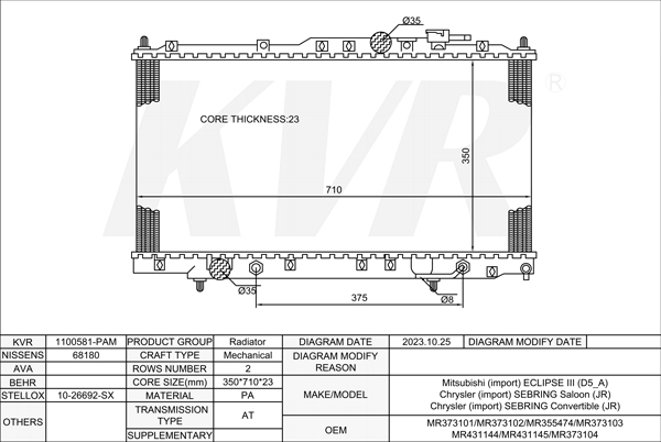 MITSUBISHI COUPE,1999-2005 6G72 (DOHC 24V) RADIATOR