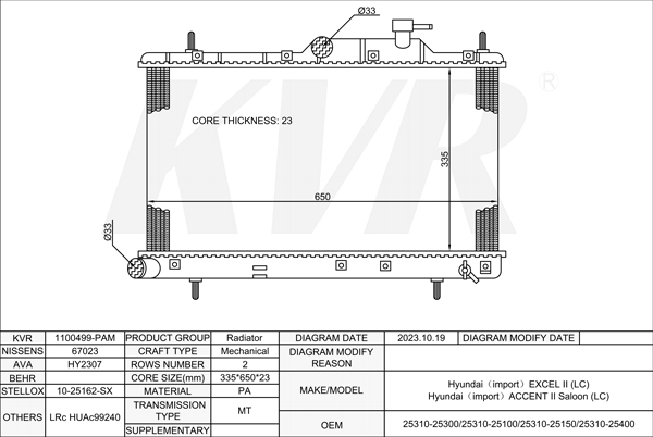 HYUNDAI SALOON,1998-2005 G6BV-G RADIATOR