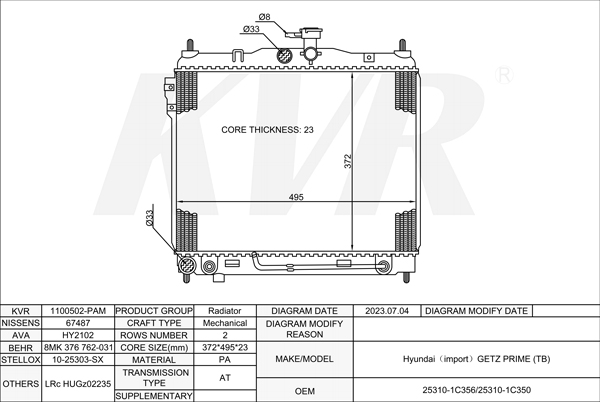 HYUNDAI Closed Off-Road Vehicle,2004-10 G6BA-G RADIATOR