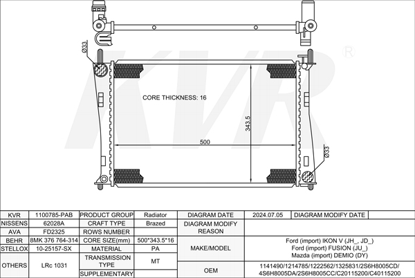 FORD HATCHBACK,2001-10 FYJB RADIATOR