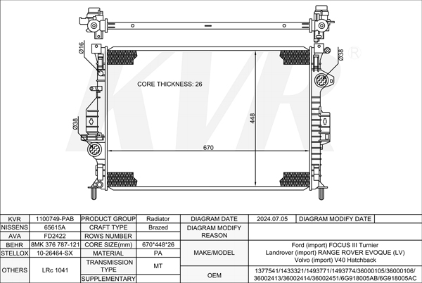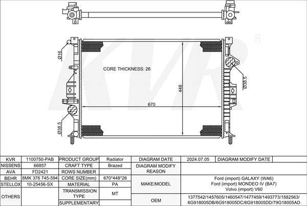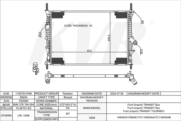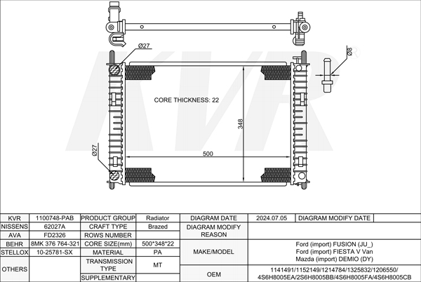 FORD MPV,2006-15 KNWA RADIATOR