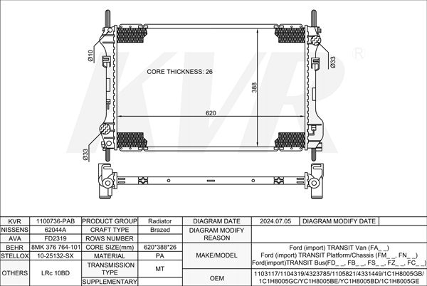 FORD HATCHBACK,1998-2007 EYDL RADIATOR