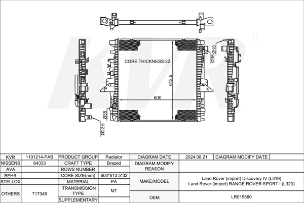 LAND ROVER Closed Off-Road Vehicle,2009-18 508PN(AJ133) RADIATOR