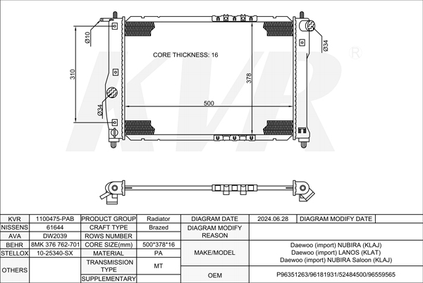 DAEWOO HATCHBACK,1997- A16DMS RADIATOR