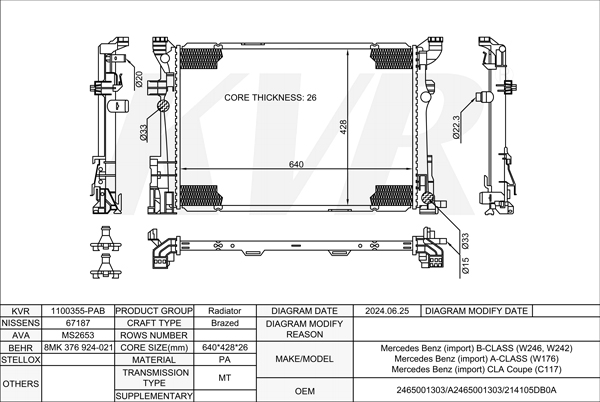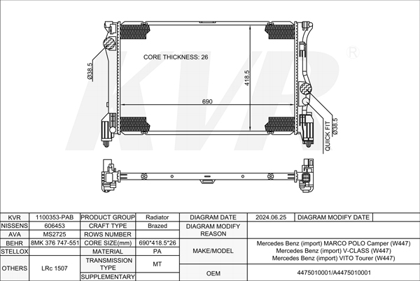 MERCEDES BENZ HATCHBACK,2011- OM 651.930 RADIATOR