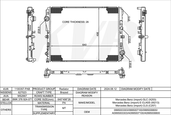 MERCEDES BENZ SUV,2012-15 OM 642.826 RADIATOR