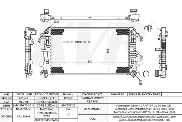 MERCEDES BENZ BUS,2006- OM 646.985 RADIATOR
