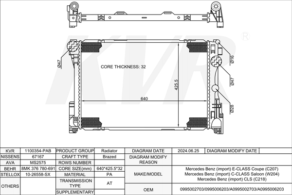 MERCEDES BENZ SALOON,2000-07 M 113.988 RADIATOR