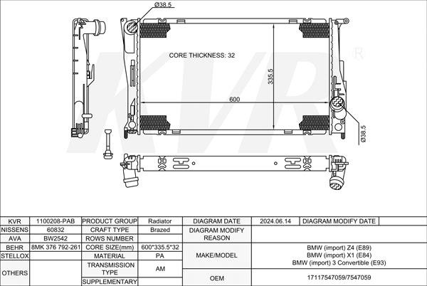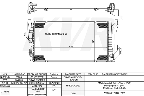 BMW MPV,2015-18 B38 A15 A RADIATOR