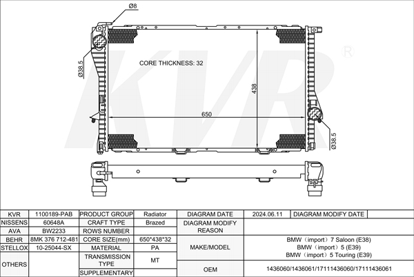 BMW SALOON,1994-2001 M62 B44 (448S2) RADIATOR