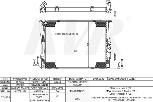 BMW HATCHBACK,2006-12 N52 B30 BF RADIATOR