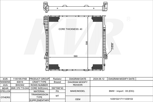 BMW Closed Off-Road Vehicle,2000-06 M62 B44 (448S2) RADIATOR