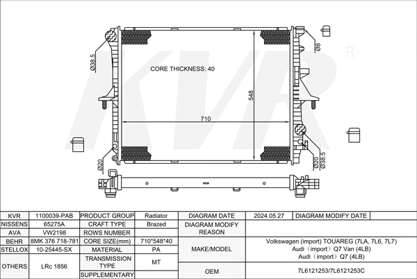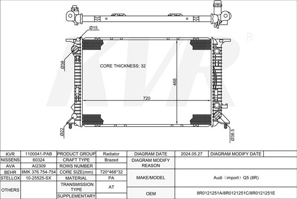 AUDI Closed Off-Road Vehicle,2006-15 BAR RADIATOR