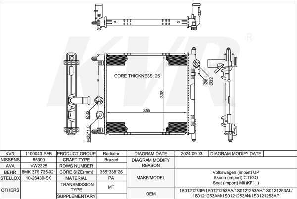 VOLKSWAGEN HATCHBACK,2011- CHYA RADIATOR