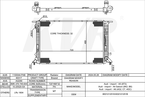 AUDI SALOON,1997-2005 AWN RADIATOR