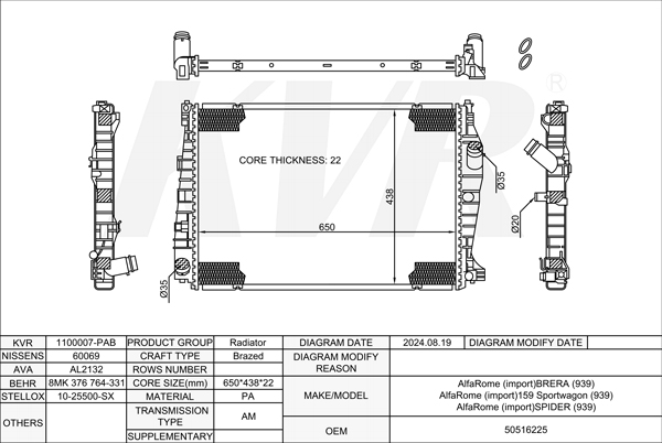 ALFA-ROMEO SALOON,2005-11 939 A.000 RADIATOR