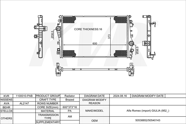 ALFA-ROMEO SUV,2016- EC2 RADIATOR