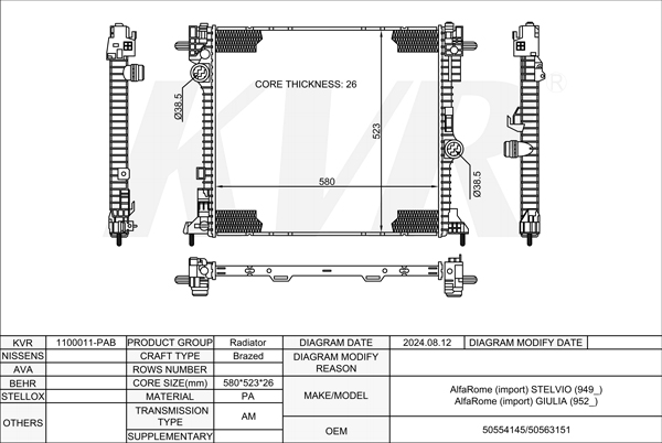 ALFA-ROMEO SUV,2016- 552 73 835 RADIATOR