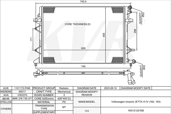 VOLKSWAGEN SALOON,2010- CRJA RADIATOR