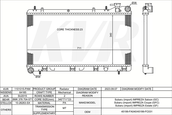 SUBARU SALOON,1992-2000 EJ20 RADIATOR