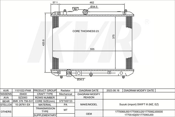 SUZUKI HATCHBACK,2005- M16A RADIATOR