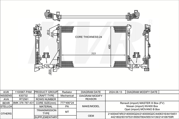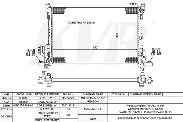 RENAULT BOX,2010- M9T 898 RADIATOR