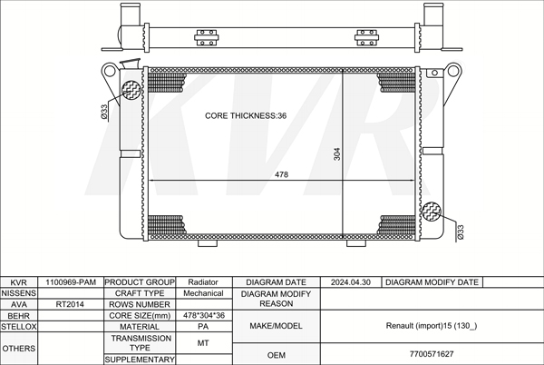 RENAULT BOX,2014- R9M 450 RADIATOR