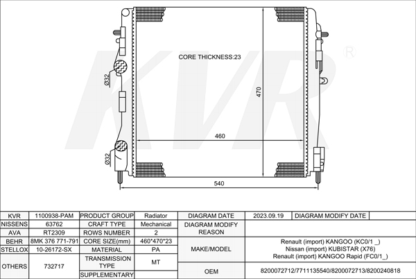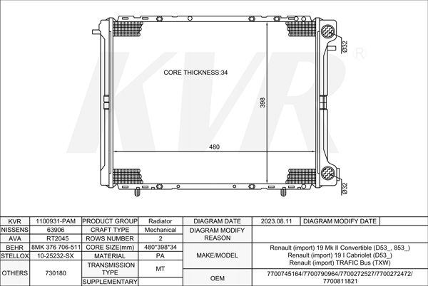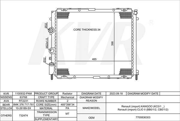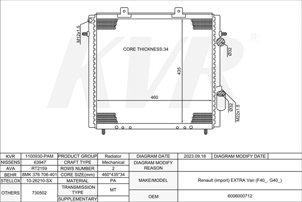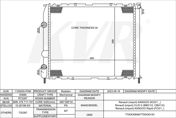 RENAULT BOX,1985-98 F8Q 776 RADIATOR