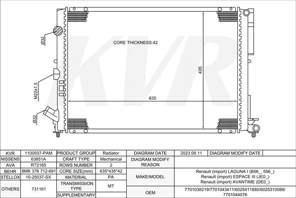 RENAULT MPV,1997- K4M 850 RADIATOR